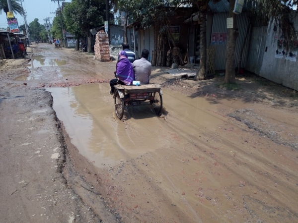 অল্প বৃষ্টিতেই চলাচলে অনুপযোগী হয়ে পড়ে সিডস্টোর-সখীপুর সড়ক