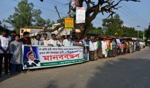শনিবার বিকেলে সিংগুরিয়া বাজারে এ মানব বন্ধনের আয়োজন করা হয়। এসময় বক্তব্য রাখেন নারিন্দা ইউনিয়নের ৩ নং ওয়ার্ড আওয়ামী লীগের সভাপতি ডা. মুজিবুর রহমান, সিংগুরিয়া বাজার বনিক সমিতির সভাপকি বাবুল মন্ডল, তালুকদার মো. সবুজ প্রমুখ।